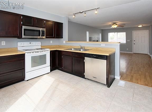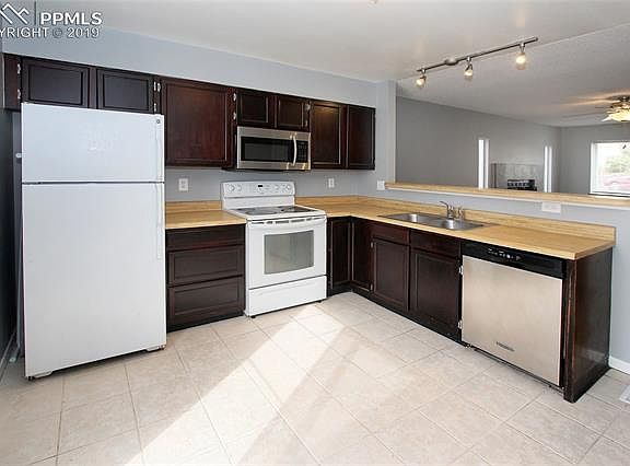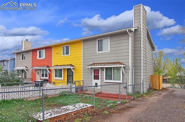 END UNIT-Charming 2bd/2ba 960 SF, townhome is centrally located in a mature neighborhood with easy access to Schriever AFB, Peterson AFB and Powers Corridor, restaurants and shopping! This home is in great shape and move-in ready with flooring updates. The whole house has been freshly painted, lower bath & updated upper full bathroom, large family room with a wood burning fireplace for those chilly nights, washer/dryer hook ups just off the kitchen. NEW fencing in back and large fenced front yard with plenty of parking. Great townhome just minutes from Peterson and Schriever AFB! This well-maintained home offers 2 bedrooms, 2 baths, a large family room with a fireplace, and a small fenced yard area and flower garden box. This home also has a Newer Roof, Newer Water Heater, a nearby park, and NO HOA DUES! This townhome could be everything you are looking for and more!