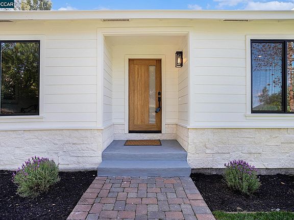 The home you have been waiting for! Meticulously remodeled residence boasting sweeping views of Acalanes and Briones hills in the distance. Main home features 3 bedrooms, 2 baths with approx. 1,800 SF of living space PLUS a detached office with an additional 150 SF with A/C and heat for year-round comfort. A chef's dream with Cafe black stainless appliances, quartz countertops and backsplash with copper inlay, large island with extended breakfast counter, instant hot water dispenser, and wood shaker cabinets. The bathrooms are equally impressive with stylish tile finishes and adjustable light-up mirrors with de-steamers. Upgrades include designer light fixtures, stylish hickory engineered wood floors, new black metal dual pane windows, new roof, new A/C condenser and heat exchanger, recessed lighting, wide baseboards, solid core closet doors, and new garage door. Laundry area includes a folding table housing a new LG washer/dryer. Top quality hardy board siding with Baja white stone ledger. Expansive deck perfect for cookouts and entertaining. Level backyard offers a sod area for play along with a separate shale rock seating area ideal for evenings watching the sunset. Top rated Walnut Creek schools and excellent commute location only minutes to downtown Walnut Creek & freeways.