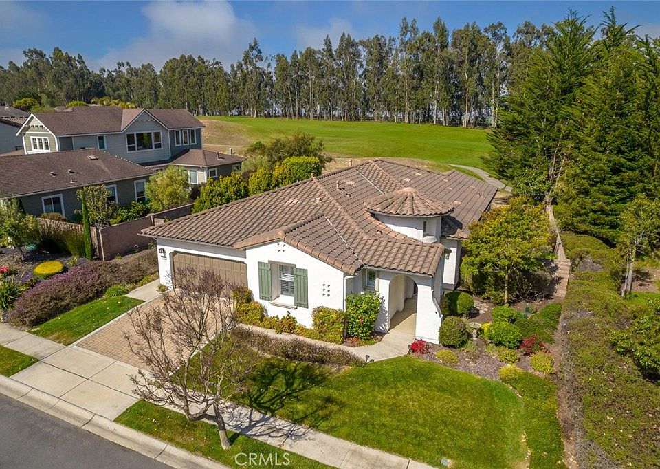 It’s time to start enjoying the Trilogy lifestyle in this magnificent Prefumo home, beautifully set on the 4th hole of Monarch Dunes Golf Course, where the west facing fairway and Eucalyptus grove views offer you the most spectacular Central Coast sunsets imaginable. This 2336 sq. ft. home is situated on a prime lot, right next to two of the best neighborhood parks in all of Trilogy. Enter through a high ceiling rotunda, and head towards the heart of the home, the chef’s kitchen, centrally located between the open-concept gathering spaces. That’s where you’ll discover rich, raised panel cabinetry, a sweeping sit-at island for casual dining, stainless appliances, including a 5-burner gas cooktop, plus decorative vent hood, gorgeous quartz countertops and travertine tile backsplash - it’s as functional as it is beautiful. Surrounding the kitchen is an extended great room with two distinct gathering spaces - one around a cozy fireplace flanked by built-in bookcases, the other encased with windows to bring in lots of natural light - both offer spectacular views. This gorgeous home is perfectly set-up for entertaining family and friends in style - start with appetizers at the island, mingle around the fireplace for cocktails, sit down to a lovely dinner in the formal dining room, then head out to the covered patio for an al-fresco dessert. The backyard offers a delightful mix of hardscape and low-maintenance shrubs and trees, where you can sit back, relax and enjoy the incredible views. Head back inside to your other oasis - the master suite! The bedroom is super-sized with a large sitting area where you can relax, take in the view and settle down with a good book. The master bath is impressive with dual sinks, makeup vanity, jetted tub, separate tiled shower with frameless glass enclosure, plus an expansive walk-in closet with mirrored door. Up front, the private guest wing has a bright bedroom and en-suite bath with a tub/shower combo. Let’s not forget the office/den with beautiful built-in cabinetry (and handy closet), which could become a 3rd bedroom with the addition of a French door enclosure. Add a laundry with sink/storage, powder room, and 2-car garage to complete the home of your dreams. Best of all, you’ll be living in Trilogy with Adelina’s Bistro, Sandalwood Spa, a gym, art studio, tennis & pickle-ball courts, 2 golf courses, and so much more.