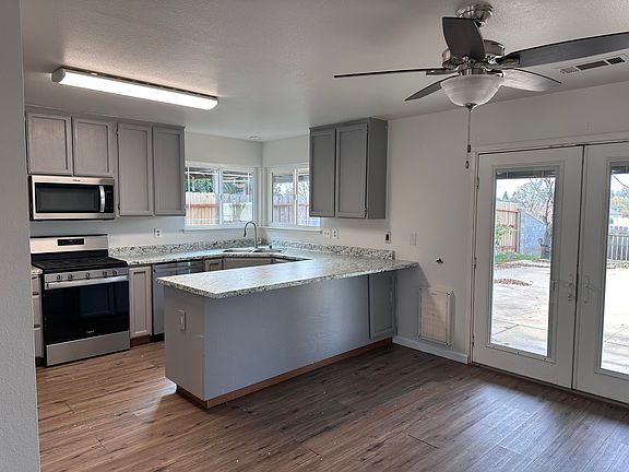 Charming 4-bedroom, 2-bath home in the Ravenwood subdivision of Redding, CA. Conveniently located near schools and shopping, this home boasts a newer roof, HVAC, and water heater, plus fresh interior and exterior paint within the past six months. Enjoy new carpet, an updated primary suite shower, and modern stainless-steel appliances—all included, along with the refrigerator, washer, and dryer. Relax in the backyard and take in sunset views.
