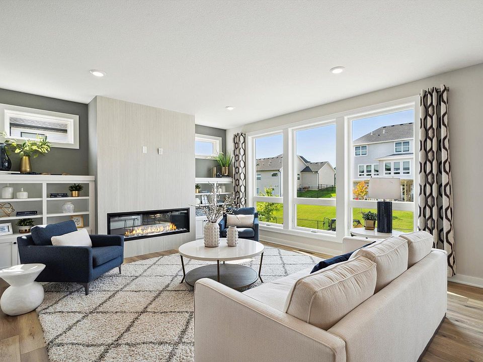 Welcome to the Connor model by the award-winning OneTenTen Homes, where style meets functionality in a luxurious living space. This exceptional home features a four car garage, two main-floor flex rooms, perfect for an office or den, alongside four spacious bedrooms upstairs and a fifth in the finished lower level. The rear flex room on the main floor includes private access to a bath, making it an ideal guest suite. Upstairs, you'll find a dual access bath, a private junior suite, and a primary suite that offers ultimate relaxation with a soaking tub, a large walk-in shower, and dual closets. Locally crafted custom cabinets and premium materials throughout enhance the design, making it perfect for a work-from-home lifestyle.
