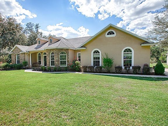 WAIT TILL YOU SEE THIS CUSTOM BUILT HOME ON 5 ACRES WITH LAKE DORR JUST ACROSS THE STREET!! THIS VERY WELL MAINTAINED HOME FEATURES AND OPEN FLOOR PLAN WITH HIGH CEILINGS. KITCHEN OPENS TO THE LIVING AREA THAT HAS BEAUTUFUL WOOD CABINETS & GRANTIE COUNTERTOPS, LARGE EAT IN BAR, STAINLESS STEEL APPLIANCES, GLASS FRONT DOOR WALK IN PANTRY AND BREAKFAST AREA WITH VIEW OF POOL & WOODED BACKYARD. THE LIVING AREA IS OPEN & BRIGHT DOORMER WINDOWS, BUILT IN SHELVES, TILED ENTRY AND SLIDERS TO THE POOL. THE FORMAL DINING AREA HAS BAY WINDOWS. A VERY SPACIOUS MASTER SUITE W/TREY CEILING, FRENCH DOORS TO POOL, BUILT IN'S, HIS & HER WALK IN CLOSETS, TILED MASTER BATH THAT HAS DOUBLE VANITIES, WALK IN SHOWER AND JACUZZI TUB. THE 2ND & 3RD BEDROOMS HAVE BUILT IN SHELVES WITH THE 3RD HAVING A WALK IN CLOSET AND FRENCH DOORS TO POOL. TILE 2ND BATH HAS TUB/SHOWER COMBINATION, 8x6 INSIDE LAUNDRY ROOM WITH BUILT IN CABINETS & LAUNDRY SINK. PLUS AN AWESOME SCREENED IN SOLAR HEATING SALT WATER POOL W/SPA AND 35x15 LANAI. HOME HAS DOUBLE PANE WINDOWS, HYBRID ENGERY EFFICENT WATER HEATER & WATER PURIFACTION SYSTEM. AN OVERSIZED 24x24 ATTACHED GARAGE WITH ELECTRIC OPENER. DON'T FORGET THE DETACHED 32x24 THREE CAR GARAGE/WORKSHOP AND THE TWO 21x18 CARPORTS, BOTH WITH ELECTRIC AND ONE HAVING A CONCRETE FLOOR. CUSTOM HAND LAYED STACKED STONE FRONT ACCENTS WITH NICELY LANDSCAPED FRONTYARD WITH A BEAUTIFUL ASSORTMENTS OF TREES INCLUDING FRUIT TREES. THE BACKYARD IS WOODED AND FENCED. YOU WON'T BELIEVE THE AMOUNT OF WILDLIFE THAT YOU WILL SEE!! PUBLIC ACCESS TO LAKE DORR IS JUST A FEW MINUTES AWAY. YOU WON'T FIND A BETTER HOME, COME LOOK TODAY!!