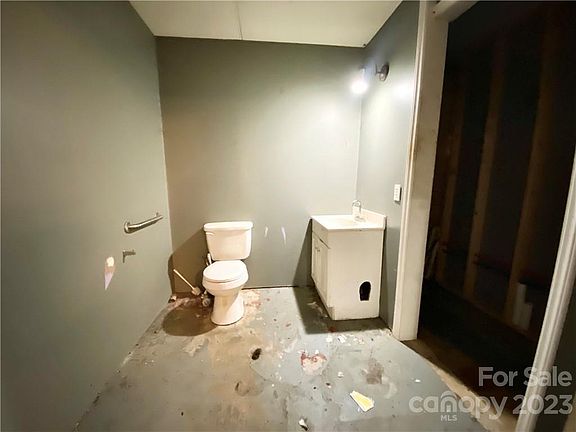 This 985 square foot building is currently zoned residential although it was a retail store in the past. Any type of business would require a request and approval from the county to spot zone this parcel per the county planner. The building interior is one large open area with the exception of the half bath, so it's a blank slate ready for your imagination. It could be renovated to create a single family home. The zoning also permits multi-family units. The full length covered front porch is a nice feature. The building has a metal roof. There is a gas line for a propane tank but there is currently no tank, heating system, or air conditioning. It is connected to county water. There is an asphalt parking area in the front of the building. The lot is .98 acres.