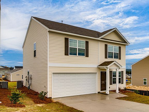 The Guilford is a four-bedroom, two-and-one-half-bathroom home. A flex room right off the entry provides additional living space. The kitchen overlooks the great room and has granite countertops and a large pantry. Upstairs, a loft space divides the primary suite from the three secondary bedrooms. The primary suite includes a private bathroom and a large walk-in closet.