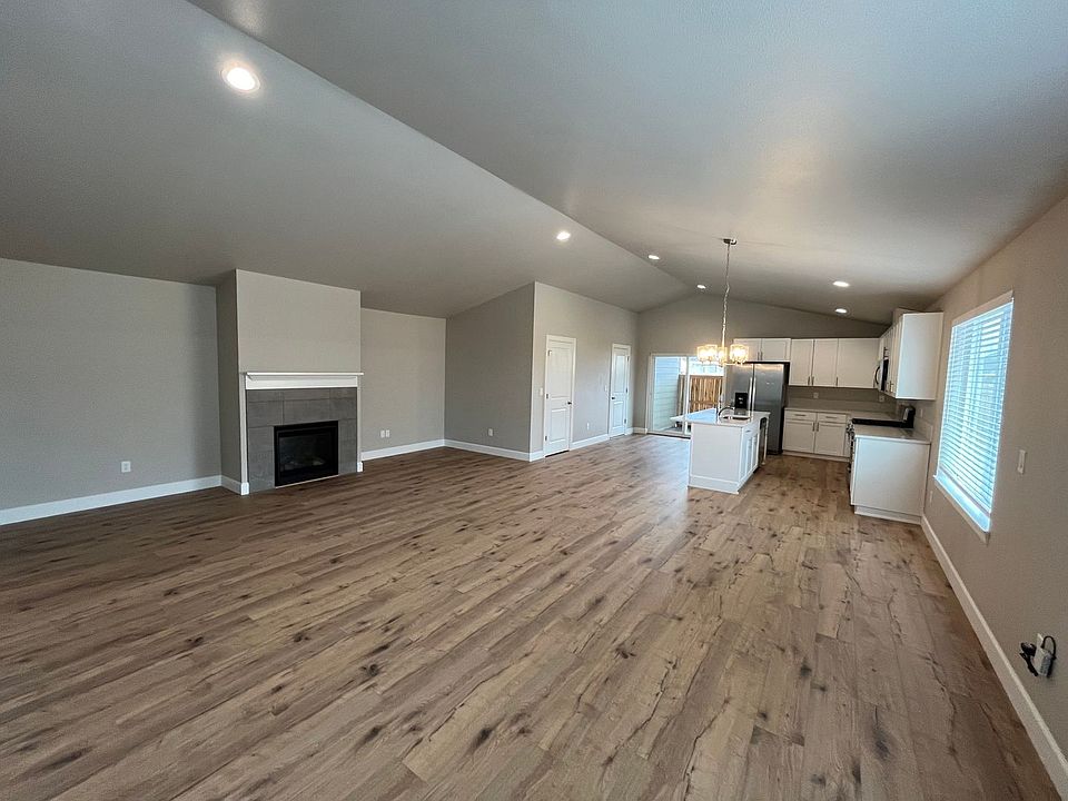 Single level home on large lot! Enter this home and you are greeted with open site-lines from living to dining to kitchen. Complete with soaring ceilings, high end luxury vinyl plank flooring, solid slab quartz counters and gas fireplace, this home will be the hang out for all the festivities life brings. Primary bedroom is tucked at back of home for privacy from rest of bedrooms. Laundry closet conveniently located in hallway. Primary bath features double sinks, tubless shower and large closet. Mini split units offer zonal heating and cooling. Good size covered patio off kitchen overlooking backyard that is completely fenced. Residents responsible for all utilities and renter's insurance. One small pet under 25 pounds considered with $50 pet rent and additional $500 deposit. Must be over a year old, up to date on shots and spayed/neutered. Vet records required. Home and property are smoke free, including vaping and marijuana. Complete applications processed in the order received and can be found at Cobalt Properties Group .com. Equal Housing Opportunity Melissa Sander, Property Manager Cobalt Properties Group Melissa @ Cobalt Properties Group .com Licensed in the State of Oregon