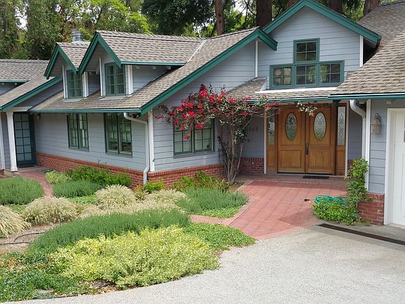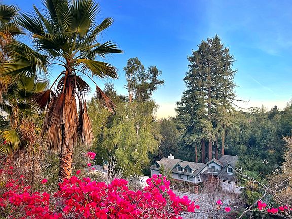 Hidden in a quiet, safe and secure enclave with easy access to all the wonderful things the Bay Area has to offer. This recently remodeled, repainted and extensively landscaped house is surrounded by green open space. It is very close to, with hidden access to Rancho San Antonio Open Space Preserve. It offers a peaceful escape from the pace of the Silicon Valley -- a custom-designed 4200-sqft, 3-BR, 3.5-bath home constructed around five huge heritage-designated coastal redwood trees on a one-acre lot. Features include six fireplaces, beautiful stonework, very high ceilings throughout, walk-in closets, master bathroom with steam room and towel heaters, impressive foyer/entryway, formal gourmet kitchen and dining room, large office, very large 3-car garage with a mechanics pit and Tesla charger, retractable stacking glass doors leading to enclosed patio, wine cellar/home theater, large Subzero refrigerator, robotic lawnmower for backyard, HEPA air filtration systems, charming dumbwaiter and laundry chute, and beautiful views from every room. The landscaped yard is bordered by Permanente Creek, has a grape vineyard and multiple mature fruit trees, fire pit area, huge swimming pool/spa with automated retractable safety cover, wisteria-covered pergola and BBQ area perfect for outdoor entertaining. There is also a large storage shed. Owner pays for water, tenant responsible for gas and electric. No smoking allowed. No pets allowed. Last month's rent due at signing. Minimum six months.