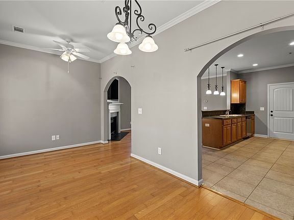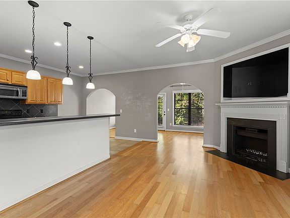 One-of-a-kind townhome customized to the original owners of this desirable end unit. The back of this townhome was enclosed to accommodate a larger dining area & an office space as used by the owners beyond the dual archways from the kitchen/living concept. Additional windows were added in the living area & bedroom for more natural light. Kitchen upgrades: additional cabinetry, pull-out drawers, pull-out trash can, spacious pantry, tile backsplash, and pendant lighting.