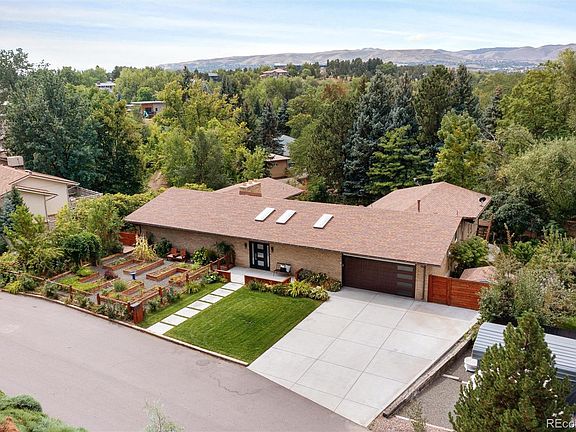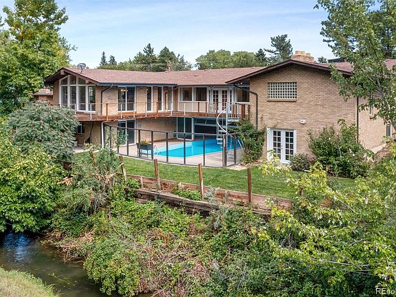 Welcome to one of Applewood’s most unique homes. This expansive custom walk-out ranch offers 5,060 square feet of private living space, featuring 3 bedrooms, 3.5 bathrooms, 2 finished basement areas, and an indoor/outdoor pool with a hot tub and sauna. Every room and outdoor space has been meticulously updated, making this an entertainer’s paradise with ample room to spread out. Guests are greeted by a front room bathed in natural light from skylights and custom water feature, leading to a spacious formal living room with a travertine, wood-burning fireplace. The open-concept kitchen, dining, and family room area boasts vaulted ceilings, A-frame picture windows, and custom wrap-around decking made of Brazilian Tigerwood. The main level includes 3 generously-sized bedrooms, 2.5 beautifully renovated bathrooms, and a separate laundry room. The primary bedroom features a huge walk-in closet and a spa-like 5-piece bathroom. Downstairs, you’ll find two separate walk-out basement areas perfect for an office, gym, game room, or additional bedroom space. The indoor/outdoor pool, hot tub, and wood-burning fireplace can be enjoyed year-round. The lower level also includes a sauna, wet bar area, wine cellar, renovated bathroom, and multiple storage rooms. Additional updates include new windows, sliding doors, roof, gutters, poured concrete driveway, skylights, garage door, carpet, and engineered hardwood floors. Located on a quiet, dead-end street with no through traffic, the property features an oversized driveway for RV parking, an attached 2-car garage, and a large storage shed. Situated on 0.3 acres of pure privacy, it includes its own nature path along the creek and an award-winning, sustainable, pollinator-friendly garden with raised gardening beds in the front yard. Conveniently located within 15 minutes of downtown Golden and downtown Denver, and just minutes from I-70, Red Rocks, Lifetime Denver West, and the future site of SLC Health Lutheran Medical Center.