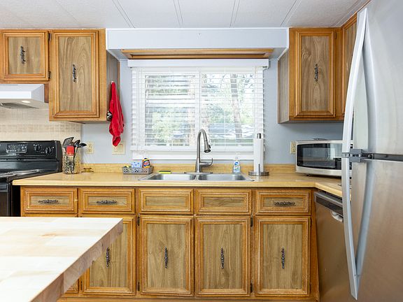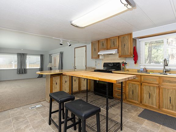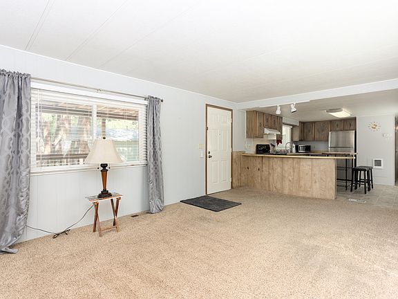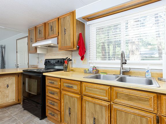 You've got to see this one! Although it's a single-wid, it's adorable and it is totally turn key! Vinyl windows, comp roof, heat pump, remodeled bathroom, roomy open kitchen, large primary bedroom with built in dresser and counters, beautiful front and back decks, fenced and cross fenced, room for not only your RV but also your boat!! Detached garage is extra large and room for a shop. Larger outdoor storage building, small outdoor storage shed, and separate dog area. And the TREES! So many gorgeous ponderosas that it looks like a park! This IS NOT a drive-by. The cu-de-sac has nice pride-of-ownership homes on it. Perfect home for a snowbird.