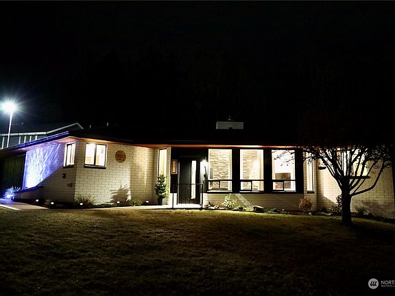 Stylish updated mid-century modern home just outside city limits, 1 minute to I-5, 3 minutes to downtown Mount Vernon. Mountain & island views w/ outstanding sunsets in desirable Skyridge neighborhood. Open living area full of natural light due to many large windows. Rural, forested feel on .33 acre. Living on one level, 1,335 SF built 1973. Primary Bedroom w/ 3/4 BA & new 2-sink vanity ready to install. 2 additional BRs w/ full BA at end of the hall. Half BA & utility in 2-car attached garage. Roomy dining room w/ sliding door to outside covered porch. New exterior & interior paint, new retro-inspired front door, new furnace, landscaping newly installed. Spacious second driveway for parking w/ RV parking under covered carport. Fruit trees.