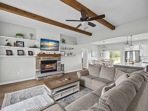 - Fireplace, Ceiling Fan(s), Open Floorplan, Quartz Counters
