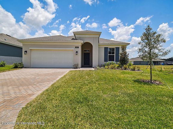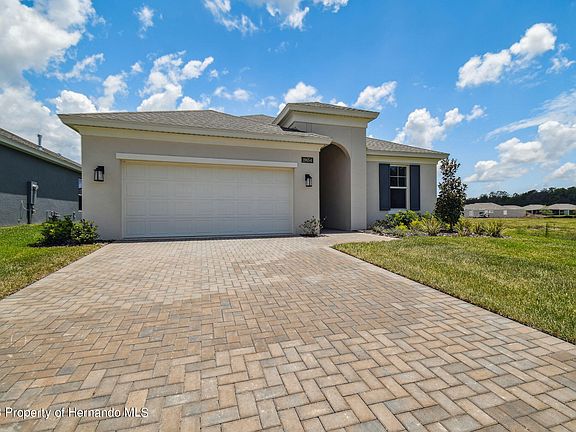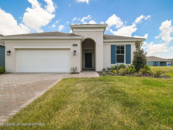 New Construction, ready for you to move in NOW!! Welcome to the Cascades at Southern Hills, a peaceful gated 55+ community. This Farmington model is a 2 bedroom, 2 bathroom home PLUS a bonus flex room. It is an open concept floor plan with all the upgrades. The kitchen, great for entertaining, includes a large island with breakfast bar, 42'' soft close cabinets, stone countertops and large pantry. The gas stove top and range is a highlight for the aspiring chef. Ceramic tile in the main living spaces and wet areas. The spacious primary bedroom is equipped with 2 walk-in closets and an en suite bathroom with dual sinks and a water closet. The welcoming living area has large 8 foot sliders that lead out to your covered lanai. Community amenities include a private clubhouse with sparkling pool, fitness center, pickleball courts, bocce ball courts, horseshoe pits, small walking path and meeting area with kitchen. The clubhouse and community are surrounded by nature with opportunity to see a variety of wildlife. All this is tucked away from the hustle and bustle, but minutes from downtown Brooksville, 30 minutes to Pine Island and Weeki Wachee state park and 45 minutes from Tampa international airport. Cable, internet and landscaping maintenance are also included! Call today for your private tour and walk through our model home!