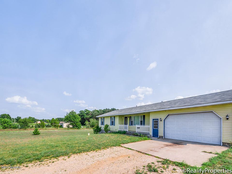 This beautiful 3 bed 2 full bath ranch home sits upon a 2 acre parcel on a quiet paved road. It features a new roof, an open concept with a cozy pellet stove, large kitchen, pantry, main floor laundry, master suite with master bath, daylight basement framed for two additional bedrooms and a large rec room, two stall attached over sized garage, located 5 minutes to the highway 131 for easy access. Call for a showing today it wont last long!