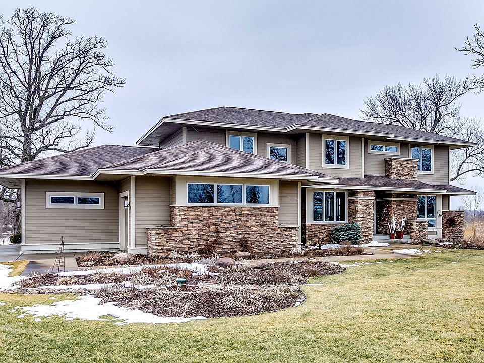 19656 Oak Grove Ave located in Prior Lake is avaiable for those transferring in, looking for a quick possession?This home rocks!!!Custom designed and built with distinction, style and appeal.Quality abounds along with privacy on the over 3 acre lot. Welcoming and inviting, a great place for family and a wonderful place to entertain.Open concept kitchen with stainless steel countertops, glass backsplash and warm tones.Hearth room, custom ceiling designs, gorgeous great room, 5 bedrooms, 5 baths and stunning master suite.Pool, perennial gardens and romantic deck.