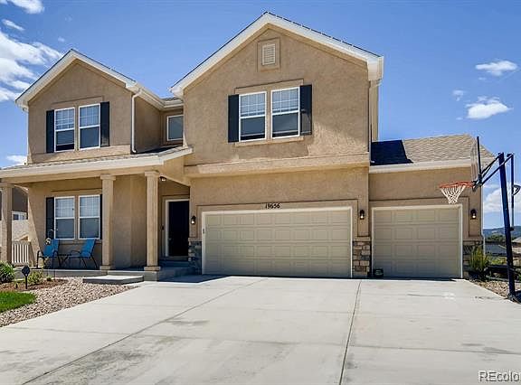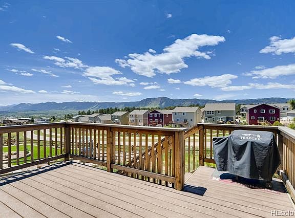 GORGEOUS views of Pikes Peak out of every west facing window! This is the 4 bed 4 bath, 3991 finished sq ft open floor plan model you've been waiting for! Fantastic upgrades include, reclaimed wood accent wall, gas fireplace with stone surround, Gray engineered birch flooring, updated lighting, custom mirrors with wood trim detail and a 5 piece master bathroom. The kitchen is complete with a double oven, stainless appliances, tumbled marble back splash, gas range, island, pantry, 42 inch stained cabinets topped with crown molding and satin pulls. Don't miss the laundry room conveniently located upstairs, nest thermostat, sliding barn door in the master, and plenty of storage space in the 3 car garage. The Dream basement includes great views, huge game area, and HOME THEATER with surround sound, 120âEUR HD projector, electric leather reclining chairs all INCLUDED! TREX deck overlooking the maintenance free back yard, 16,000 sq ft lot and glorious MOUNTAIN VIEWS!