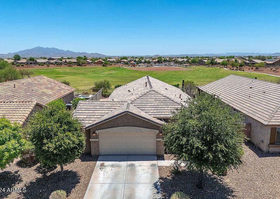 **Seller Offering $10k Concessions w/Full Price Offer** BEAUTIFUL single-story home in the heart of the desirable Blue Horizons community, backing up to a large green belt and playground, offering both privacy and a beautiful view. With 3 spacious bedrooms, 2 bathrooms, and a versatile den, this home is perfect for families of all sizes. The kitchen boasts stainless steel appliances, a central island, backsplash, and large pantry. Impeccable pride in ownership is visible throughout. Your own private oasis awaits in the backyard - beautifully landscaped with pavers, multiple sitting areas, and a cozy fireplace surrounded by lush greenery, creating a serene and inviting environment. Conveniently located just off the I-10, this home offers easy access to the entire valley.