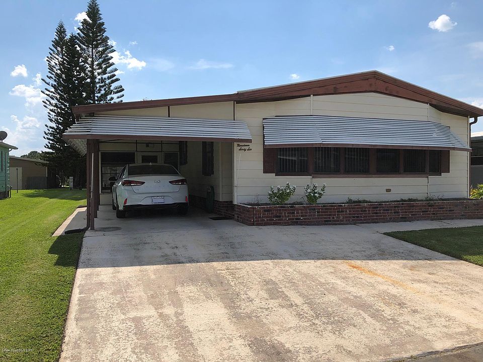 Perfect home for retirement or second home in the sought after 55+ community of Palm Bay Colony where you own the lot and HOA is voluntary. This 2/2 is in a great location to shops, restaurants, downtown Melbourne and less than 6 miles to the beach! Open floor plan with large bedrooms. Master has shower and a garden tub with a walk in closet. Guest bathroom has brand new flooring, toilet and vanity. A MUST SEE! Call today for a private tour or ask agent to send a walk through video if you're outof town.
