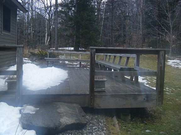 Cute 2 bedroom, 2 bath ranch tucked away in a pleasant country setting, yet convenient to skiing! Features open living/dining/ & fully equipped kitchen, wood floors, slider to back deck & partially fenced yard. Full unfinished basement offers a sauna and additional woodstove. Large storage & wood shed. Seller & agency have no knowledge of systems. Being sold as is. Buyers responsible to verify all data. Freddie Mac 1st look initiative. Only owner occupied offers considered until 4/19/14. See attachments.