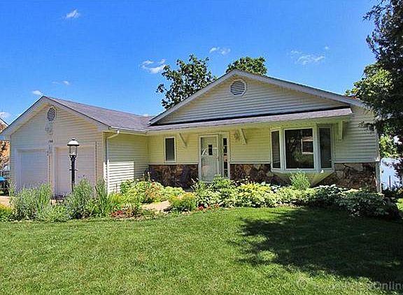 Looking for a weekend home or full time residence, this lovely lake front home is waiting for you. Wake up to or end your day with a beautiful view. The home has a fabulous updated kitchen where you will enjoy preparing meals for family & friends. Kitchen has custom cabinets, Sub Zero refrigerator & center island with cook top. Open floor plan includes a formal dining area & living room with wood burning fireplace & don't forget the great view of the lake from the covered back deck! Home has a large main floor master bedroom & recently updated bath with separate tub & shower. The lower level has large family room with gas fireplace & plenty of room for family & friends to stay over in the additional bedroom suite. As you drive up to the home you will notice the beautifully landscaped home from front to back yard. As you step out of the lower level onto the patio you will see a place to live on the lake with a concrete boat dock and covered boat house, the perfect picture view!!