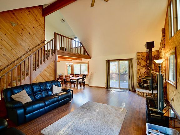 This nice chalet has three bedrooms & two bathrooms plus a loft with vaulted ceilings and wood accents throughout. Cozy living room with wood burning Lopi wood stove. Covered entry to the front door that wraps around to the side and rear decks. Breezeway covers between the kitchen side door, the laundry/utility room with utility sink, and the double garage. Storage and wood sheds in the side yard for great utility. Ample bedrooms, with master on the main level and the two others up. Gentle terrain and easy access make this a good year 'round location to enjoy.