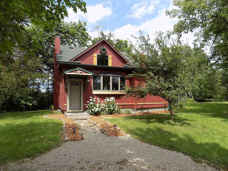 A little piece of heaven on this homestead on 1.7 acres at the end of a dead end road right on the Apple River. Cute 3 BD /2 BA home with newer 2 car detached garage and older barn perfect for storage! Wood burning stove in LR, updated kitchen, main floor living with master and laundry on the main. 2 more bedrooms upstairs. Lower level is finished and would be perfect for a pool table, ping pong or a media space. Half bath in LL could be converted to a 3/4 pretty easily. Room for chickens and great garden space. Fish for dinner right in your own back yard! This is a unique property that has history, privacy and potential galore. Don't miss the chance to own this charming property. This one will go quickly.