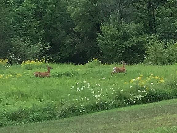 Mobile home on basement! Screened-in back deck. Covered front deck. Replaced flooring, all windows & doors. All appliances. Two car garage. Four+ Acres
