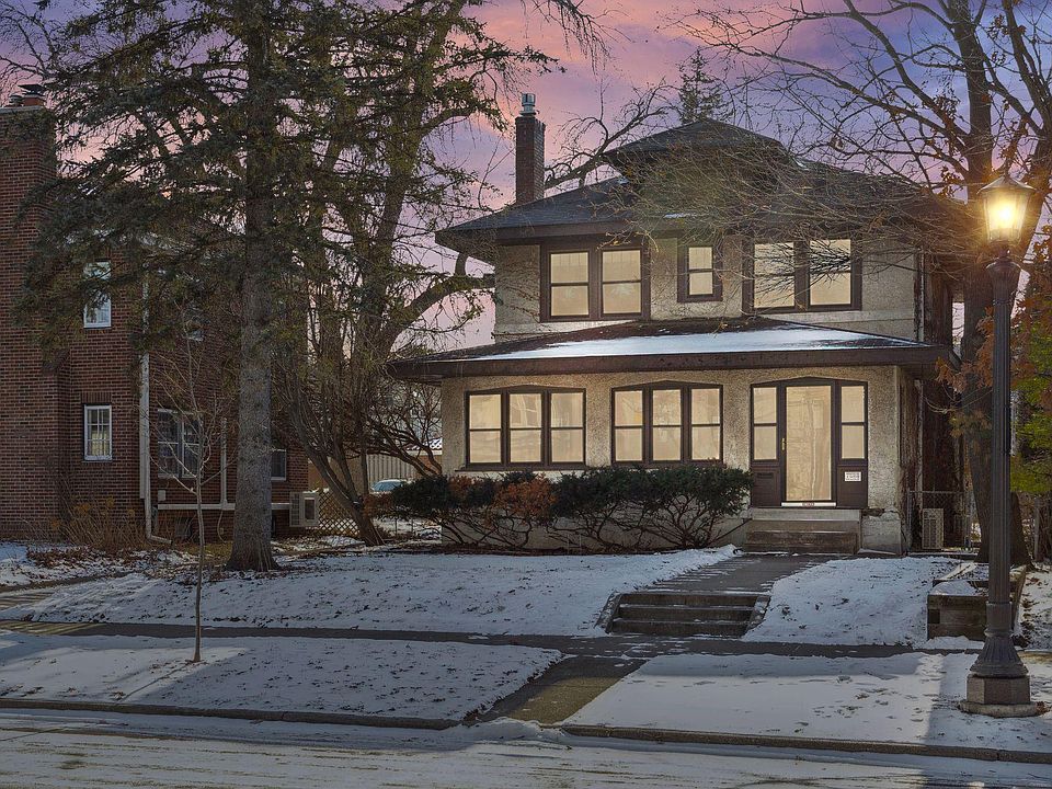 Discover this wonderful craftsman style 2 story located in Merriam Park just east of the University of St Thomas. FEATURES INCLUDE: Front porch with bead board ceiling, mosaic tile entry, beveled glass doors, crown molding and dramatic wooden cased archways throughout the main level with craftsman style millwork & wide baseboards, living room with brick gas fireplace surrounded by built-in bookshelves plus a built-in entertainment center, formal dining room with coffered ceiling, built-in buffet and cozy window seat, convenient 1/2 bath on main level, large kitchen with ample cabinet space, recessed lighting and spacious informal dining which features an impressive wall of stained glass windows, up stairs are 3 generous sized bedrooms, a sunroom back porch and a subway tiled bath with separate tub and shower. All this plus many newer Andersen replacement windows, a newer garage which is setup for electric car charging and a free one year Home Warranty. This is an As-Is sale.