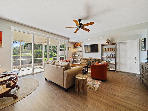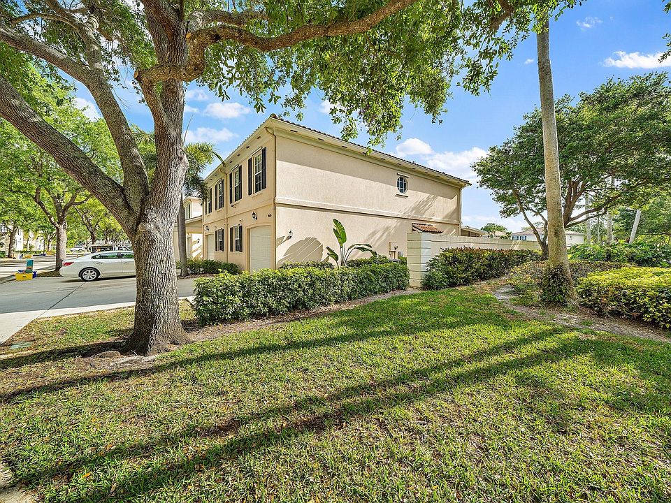**Call Amanda 561-440-2222 to set up a showing** Rarely available waterfront corner townhouse offers gorgeous lake views and spacious green space. This beautifully updated 3-bedroom 2 1/2-bathroom home has been newly painted in a neutral color and features engineered vinyl plank flooring throughout, crown molding, additional kitchen cabinets, quartz countertops, and electric blinds. The open floor plan living kitchen area flows out to a screened lanai overlooking the water. Riverwalk is a manned gated community which offers luxury resort-style living without the exorbitant country club fees. It features three heated pools, a fitness center, and eight lighted Har-Tru tennis courts as well as 12 miles of walkways and a calendar of activities.