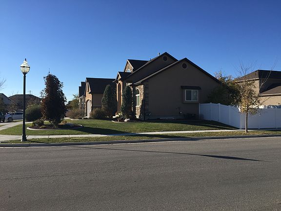 FOR SALE BY AGENT MATTHEW WILLIAMS. 801-573-2228. MLS# 1344435. Very nice, newer home in sought-after Mountain View Estates! Open floor plan with two-story vaulted ceilings and plantation shutters throughout. Kitchen features terraced maple cabinets with crown, and a stone/glass backsplash. Spacious master suite on main, 3 more bedrooms up. Formal living room (or office) off entry. South facing 1/5 acre corner lot with a great roomy yard--professional landscaping front and back, fully fenced, huge patio, and shade trees. Extra wide driveway to accommodate 3rd car parking and RV/Boat Parking. Wired for surround sound and whole-home audio/computer automation. Natural gas BBQ hook up. Basement has been partially finished with framing, insulation, and professionally wiring (this could easily be a 6+ bedroom home). Ideally located - you can walk to the pool or the park, which is literally across the street, or watch the kids walk to the new Odyssey Elementary directly from your front porch. Easy freeway access; short drive to Salt Lake, Hill AFB, or airport. Offering a 3% B.A.C.