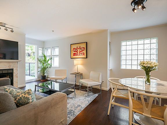 Perfect Kitsilano Townhome! Steps to Kitsilano Beach, west 4th, top schools & more. This well laid out home features 2 expansive & bright patios. Formal entry leads to a cozy living & dining room with a wood burning fireplace. The kitchen features full sized stainless steel appliances, custom millwork, quartz counter tops & open passthrough for convenience. Updated powder room is located on the main floor for guests & visitors ease of use. 2 well-sized bedrooms and full bathroom are below the main, with a beautiful patio off the main bed. Lower level has been updated with luxury vinyl water proof flooring. This boutique fully rain screened building includes 10 units and allows 1 pet & rentals with restrictions. 1 parking & 1 oversized storage. Book your private appointment now!
