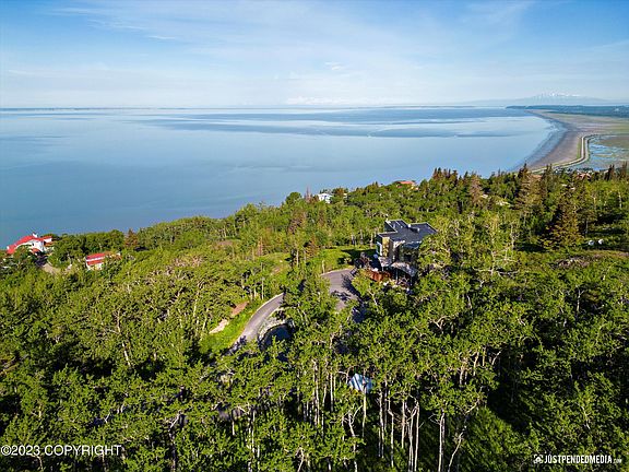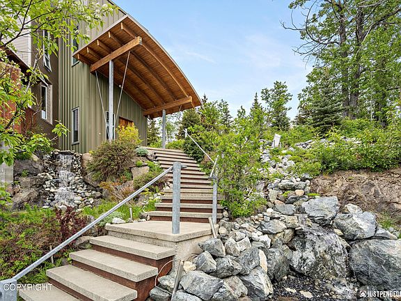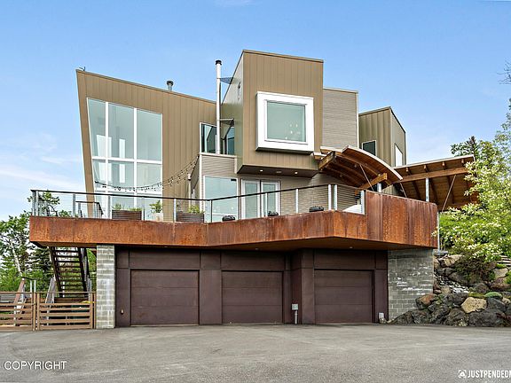 This modern masterpiece is the perfect combination of minimalist style and eco-conscious design, with panoramic views meeting you at every turn. Integrating the elements of wood, concrete, and metal, it's an architectural work of art both inside and out while still being easy to maintain. No expense has been spared from the unique entryway that takes you by a pond and over a bridge tothe suspended gas fireplace clad with sheet metal and a secret pull-out TV stand. The gourmet kitchen features Thermador and SubZero appliances, concrete countertops, and a walk-in butler's pantry. Venture up the floating staircase and find a loft home office, the master bedroom with a built-in platform bed overlooking the Inlet, and a spa-like en suite with a round sunken tub, walk-in stainless shower, trough sink, and private laundry. This luxury home is one-of-a-kind and built to withstand the elements. From the steel moment-frame construction to the polished concrete floors and aluminum triple-pane windows, this home was made for Alaska and truly showcases its beauty.