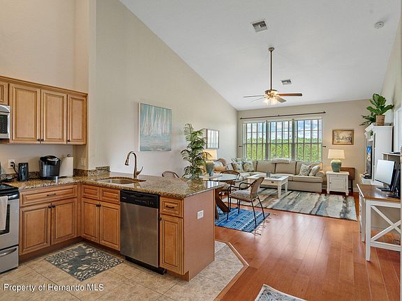 AUC-accepting back-ups....Take advantage of this rare opportunity to own this stunning and immaculately kept 2-bedroom, 2-bath condo in the highly sought-after Southern Hills community. Step inside to find a custom kitchen with beautiful all-wood cabinets, elegant granite countertops, and modern stainless steel appliances. Updated bathrooms, large bedrooms with plenty of closet space, hardwood flooring, vaulted ceilings in the great room and kitchen. Enjoy breathtaking views overlooking the driving range, making every day feel like a vacation. Fully furnished and ready for relaxing or entertaining!