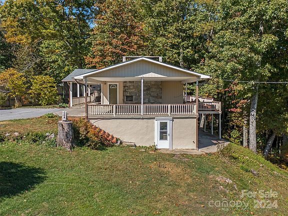 This COTTAGE HOME PLUS TREEHOUSE in the very desirable Little Switzerland community is move-in ready. The Open floor plan on the main level, with updated kitchen, living & dining area w/hardwood floors is warmed in the winter by the beautiful stone fireplace & cooled by the 4 large sets of patio doors, 2 on either side for cross ventilation & cool summer breezes. The tree house has loads of potential for many uses such as artist studio, guest house, or playhouse for the grands. The primary bedroom is huge & has a large stone fireplace. The open & empty space in the laundry room offers options for an additional bedroom or bathroom. Both bedrooms have sliding door walkouts to the wooded backyard & concrete patio area. Level paved driveway directly onto the carport & into a front door, convenient access is a bonus. Lots of storage options inside & out; storage shed, basement & beneath the treehouse. There is deeded access to the pond on the adjoining property.