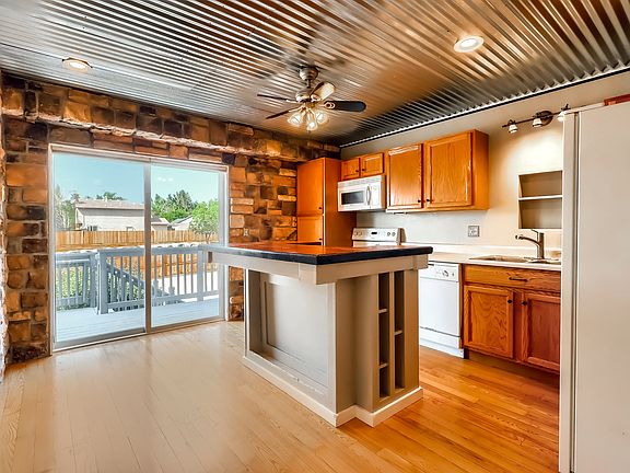 Beautiful 2 bedroom townhome in the highly sought after Oakcrest community! This townhome features and open floor plan with beautiful modern rustic finishes throughout including stonework on the walls. The living room off the entry includes a charming wood burning fireplace to keep warm on those cold winter nights and custom mantle. The kitchen is complete with an tiered island, ceiling fan, nook, modern industrial finishes on the ceiling, balcony access and plenty of counter/cabinet space perfect for entertaining! The primary bedroom won't disappoint with a ceiling fan, large walk in closet, en suite full bath and large windows to let in the natural light. The basement offers a cozy cabin feel with a built in desk, wood paneling on the walls and stonework. Ideal location, with close proximity to Plum Creek Golf Club, Metzler Ranch Community Park, Black Hawk Ridge Golf Course, Castle Pines Golf Club, Outlets at Castle Rock, Milestone Shopping Center and several other area shopping centers/malls. With plenty of shopping, dining and entertainment options in the area there is something for everyone! Interstate 25 is also easily accessible.