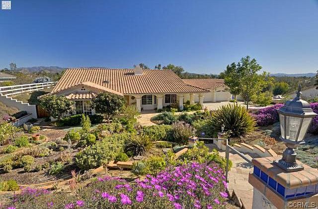 Magical single level estate in super nice area of Fallbrook, valley and mountain views, in a cul-de-sac, meticulous & colorful succulent artistry landscaping, park like setting with mature trees. Custom upgrades, 4 bdr 2.5 baths,one of the bedroom has a separate entrance from the outside that can be used as a mother-in-law quarter, Master offers separate tub and shower with large sliding glass door that opens to the covered patio and backyard.Spacious great room for your entertainment,custom pocket doors, see through fireplace.Open and bright floor plan with skylights. Vaulted ceiling. Plantation shutters and upgraded windows. kitchen offers gas cook top and double oven. large walk in pantry.separate laundry room with sink and built-in cabinets. 3 car garage with work bench and lots of cabinets.Out door barbecue,greenhouse,and large covered patio for your outdoor entertainment.This home is immaculate and meticulously taken care of and ready for a new family.