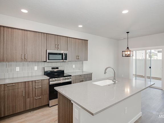 Feel enriched in your brand new home located in Meridian, Idaho! The Owyhee 1597 floorplan is a two-story home that effortlessly blends functionality with modern design. Downstairs, you'll discover a practical half bathroom, offering convenience for both residents and guests. A few steps from the entryway brings you into the heart of the home, an open-concept living area where the kitchen and living room come together, creating a welcoming space for gatherings and daily life. Kitchen is tastefully appointed with solid surface countertops, stainless steel appliances and soft close cabinets. Head upstairs to an additional full bathroom serves the two generously-sized bedrooms, streamlining morning routines. The primary suite is a standout feature, complete with a walk-in closet for your wardrobe and storage needs. Photos are actual.