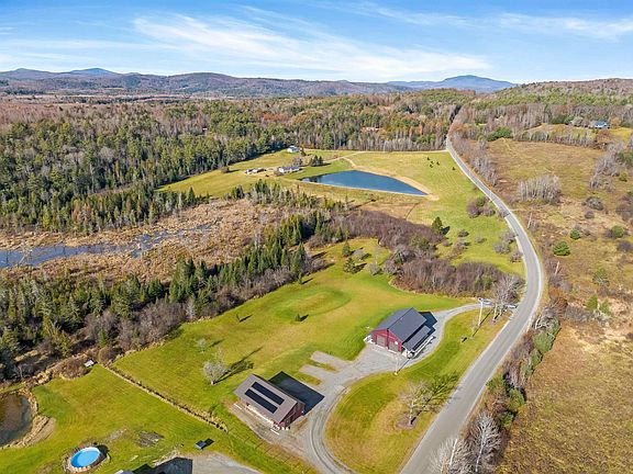 Here's your opportunity to enjoy a modern "barn-dominium" style home on over 10 acres and tons of fun upgrades for the outdoor enthusiast. Built in 2017, this home is energy efficient with owned solar panels and radiant heat while maintaining the rustic feel with wood finishes throughout. Cathedral ceilings provide a loft-like feel. The gourmet kitchen features stainless steel appliances, including a mini wine fridge, and opens up to the living room. A charming wood stove adds warmth to the home on those extra cold winter nights. Down the hall is a luxurious bathroom with a huge tile shower with multiple shower heads, a double vanity sink, and laundry space. A flexible open office space completes the first floor. Upstairs is the bedroom with private 1/2 bathroom and walk-in closet. High end finishes include a wine fridge built into the kitchen island, radiant multi-zone heat, floor to ceiling garage doors, and heat pumps that double for heat and air conditioning. This home benefits from R35 walls and ICF foundation. This is the perfect property to live your Vermont dream, with 5 acres of maintained land and 5 acres of wilderness that backs up to the VAST trails. A full porch extends along the entire home on both sides, showcasing gorgeous country views. There's 3 RV hookups, and an exceptional separate garage with 5 bays. Located just minutes to I91, 25 minutes to St. Johnsbury, and 45 minutes from Lebanon, NH.