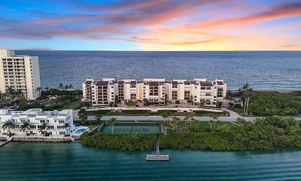 The boutique building sits on over 5 acres, including owned Intracoastal property across the street with tennis courts and a day dock to meet your guests. New roof, completed milestone inspection, healthy funded reserves, and HOA dues reduced 13% for 2026. Includes two deeded covered parking spots in secure garage, 24-hour manned security & staff. Rare opportunity in one of Florida’s most sought-after enclaves!