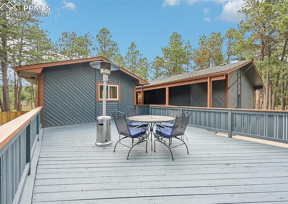 Welcome to this UPDATED & AMAZING Woodmoor retreat in the heart of Monument. This home is gorgeous and completely move-in ready! This 4 bedroom, 3 bath home offers main level living PLUS a finished basement * Completely updated & loaded with mid-century modern charm & style * TO DIE FOR new kitchen w/ new quartz counters, center island with extra seating, sleek new cabinets, stainless steel farmhouse sink & new appliances * Large walk-in pantry * Incredible Great Room with painted brick wood burning fireplace * Soaring vaulted ceilings with painted beams * Corner Dining Nook * Wide Mud Room off the garage entrance * Sitting on a lush .73 acre lot with a new fence (approved by HOA) * Oversized front deck * Welcoming covered front entrance * Deluxe Primary Suite on the main level w/ walk-in closet, en suite bath, walkout to the back patio & cozy sitting area in front of the double-sided fireplace...imagine winding down from a busy day in front of a crackling fire right in your own bedroom! * Downstairs you'll love the add'l living space with a Rec Room & wet bar * The yard is massive and full of trees - and the best part is all fire mitigation has been done within the last year * The charming back patio has tons of space for entertaining friends & family or just soaking up the peace & quiet * Wide driveway and extra parking area for guests coming to check out your new home * You'll feel like you're a world away, but you've got restaurants, coffee shops, library, top-rated Lewis Palmer D29 schools just a few minutes away * Explore lakes, parks, golf & hiking trails practically around the corner * Easy access to I-25 and Hwy 83 for access to Denver or Colorado Springs! Check out the updates including: Newly refinished Hardwood floors, New furnace, New Roof, Freshly painted exterior, Updated lighting & fixtures, New EV Charger in garage, New garage door & garage insulation, High-tech whole home water filter with UV light. WOW!
