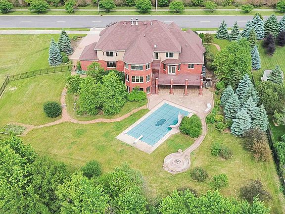 Gorgeous custom estate on double lot featuring 5 bedrooms, each with their own private bath and walk in closets, 4 car garage, walk out basement to private backyard with inground salt pool, fire pit and custom hardscapes including brick paver driveway and patio!! The Luxury kitchen has beautiful cherry cabinets, stainless steel appliances, island & a breakfast bar! Private master suite with fireplace featuring glamor bath and sitting room with deck overlooking gorgeous back yard! Main level 4 season sunroom is great for entertaining. Also featuring main level bedroom with private bath perfect for related living. Laundry located on 2nd level close to bedrooms. There is a large unfinished walk out bsmt with Radiant heat in basement floors and garages. Roughed in bath also in the basement. Pella windows and doors thruout. Custom design, custom decor thruout. Main level study with fireplace perfect for professional. Smart Home Technology!! Don't miss out on this beauty!! Just beautiful!