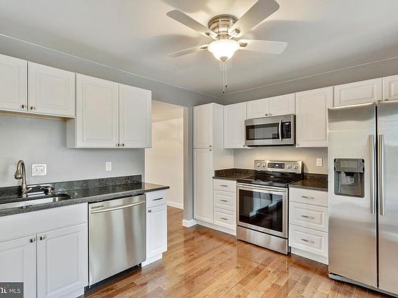 Spectacular end unit townhouse! Beautifully remodeled with all new stainless-steal kitchen appliances, granite counters, updated bathrooms, new carpet on upper level, fresh paint throughout. Hardwood floors throughout the main level. New sliding glass door , fully fenced rear yard with patio & storage shed, partially floored attic for useful large storage. Backs to open space for extra privacy.