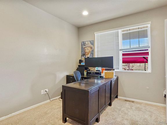 You’ll love this open concept home with private office area on the main floor. Newer SS appliances and walk-in pantry in the kitchen. Upstairs laundry serves 4 bedrooms plus the spacious owner’s suite with the beautiful walk-in shower and dual walk-in closets. Lots of room to expand in the unfinished walk-out basement with rough-in. Backing to open space with views of the mountains and just minutes from DIA and Buckley AFB, this home is perfectly located near E-470 and Pena Blvd.