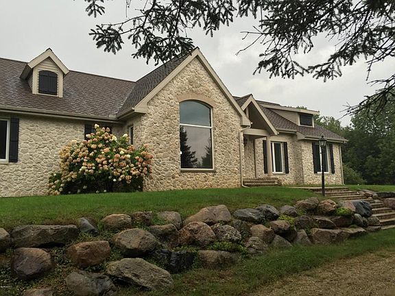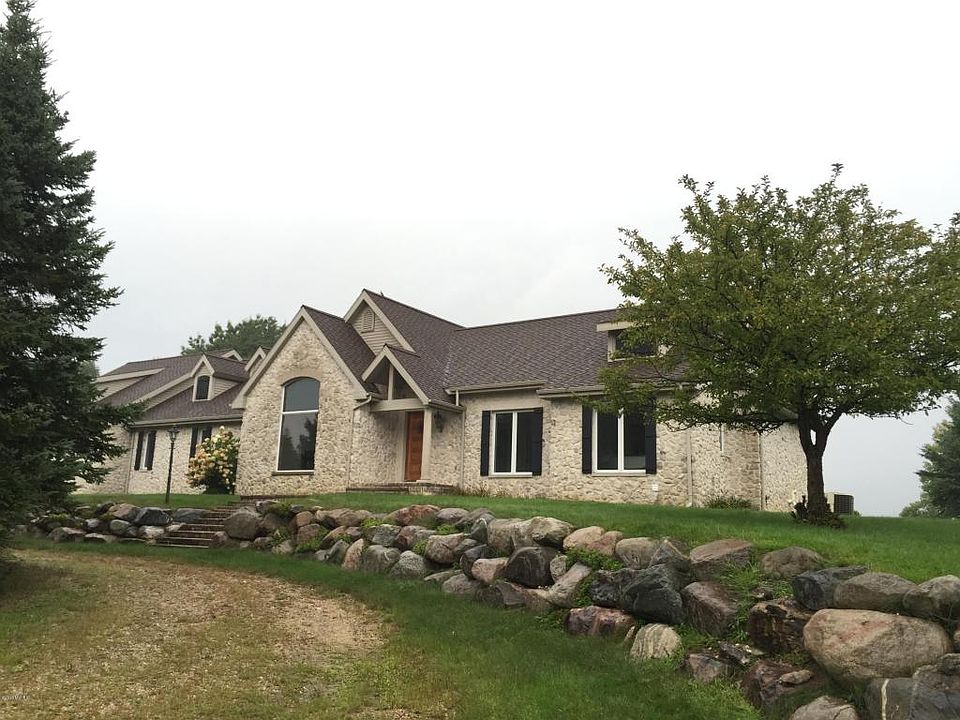 Scenic views along the Muskegon River on 3.5 private, wooded acres are yours with this custom 4 bed, 3.5 bath executive ranch. Quality upgrades inside & out include limestone exterior, gourmet kitchen, cherry woodwork, Viking range, Sub Zero fridge, Granite & Corian counters, Italian stone & marble flooring, Hansgrohe & Kohler fixtures, limestone fireplace, ample windows & much more. Master suite offers walk-in closet, bath with twin vanities, vessel sinks, walk-in shower, tile & glass block acc ents. Spacious lower level features a bar, ledge stone pillars, family/rec area & entertainment space, plus 3 additional rooms & Bilco door. All appliances, central air, Bose indoor/outdoor speakers, security system, underground sprinkling & home warranty included. This awesome riverfront property is a must see.
