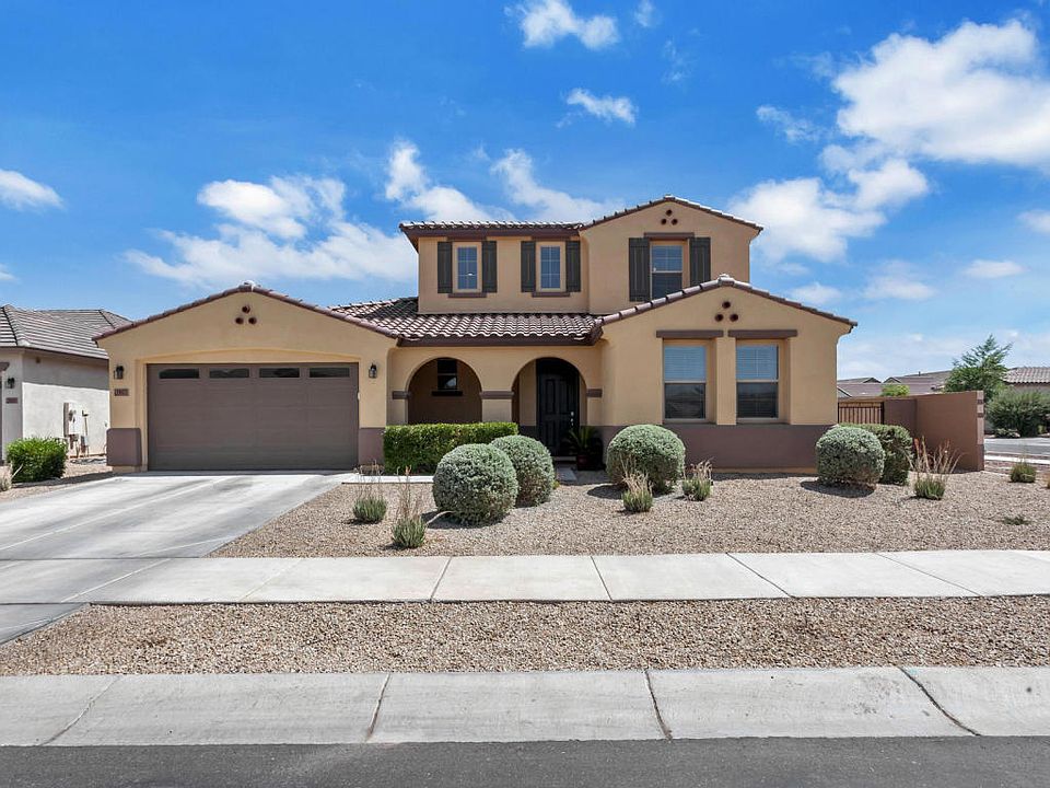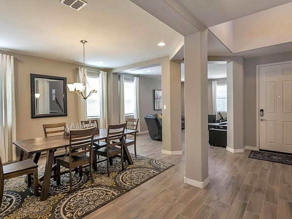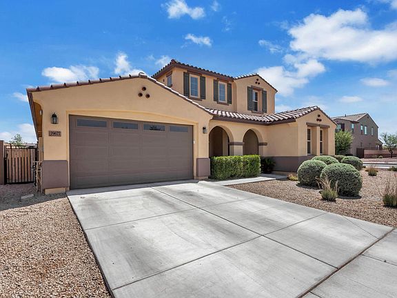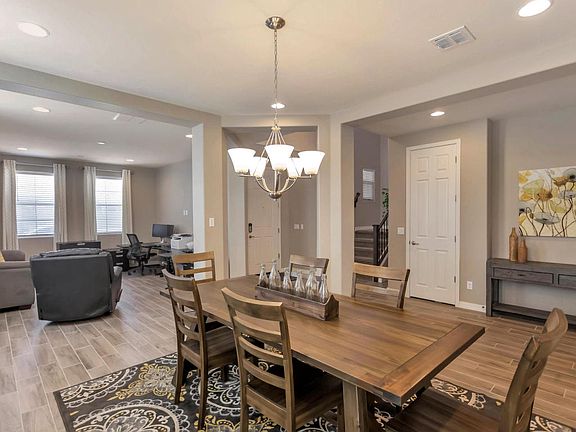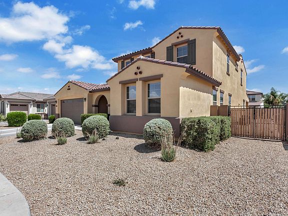Located in Gated Cielo Noche this highly upgraded home sits on a corner north facing lot. The 3742 Sq.Ft Plan features 4 spacious bedrooms, large loft, 3 1/2 baths, formal dining and living areas plus an open kitchen family room concept. The kitchen boosts: staggered espresso cabinets, stainless steel appliances, five burner gas range upgraded granite a large island with breakfast bar, butler's pantry, large walk-in pantry, soft closing drawers, pull out shelving and a bay window eating area. Upgrades include: wood look tile flooring down, multi slide glass door to patio and pool, upgraded stair railing, spa like master bath, expanded recessed lighting, wired for whole home sound & security system and so much more! Sparkling pool, gas fire pit and expanded covered patio. A must see home!!
