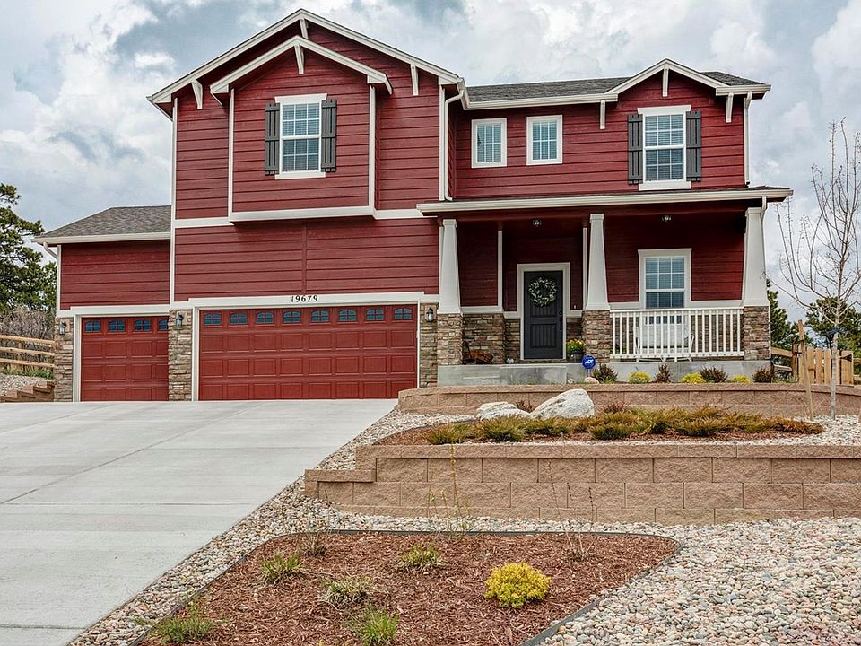 Absolutely Stunning 2 story with mountain views on large .60 acre treed lot! 4 car tandem garage. Gourmet kitchen with Quartz counter tops, subway tile backsplash, white staggered cabinets, double ovens, gas cook top, stainless steel appliances, island, and pantry. Living room features a Fireplace with Stacked Stone Surround to Ceiling and Mantel, and a view out the windows of thick scrub oak, and trees, main floor office off entry. Spacious master bedroom with double door entry. Luxurious Master Bath with Quartz tops, white cabinets, upgraded tile with inlays at shower and soaking tub. Large loft with amazing views of Pikes Peak! Upper level Laundry room. Finished basement with Bedroom, Bathroom, and Large entertainment room. Stamped concrete patio off kitchen with gas line for BBQ. Upper yard features a large stamped concrete area for gas fire pit and seating area to enjoy the mountain views. Yard is filled with Ponderosa trees and scrub oak giving you privacy, and open space views.