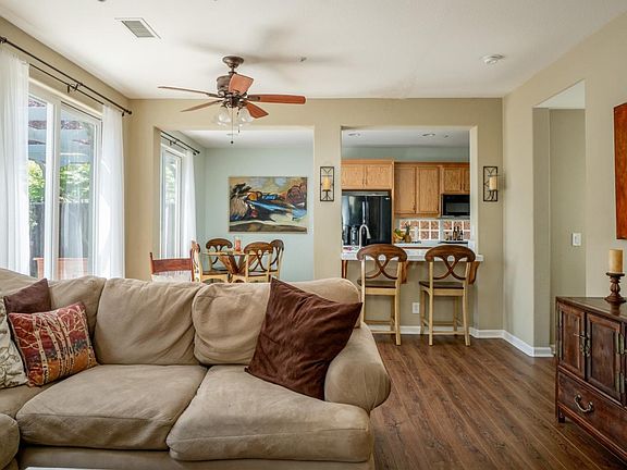 Come see this turn-key Creekbridge home with lots of character and warmth. The living room and dining room are full of light from the wall of windows and vaulted ceilings. The kitchen opens up to the living room and easy access to the private, low maintenance back yard for all your entertaining or gardening activities. There is a half bath and laundry room on the first floor. The second floor has two bedrooms, hall bath with shower over tub and a spacious master bedroom. The master has beautiful views of the surrounding mountains, a walk-in closet and bath with a spa-like tub, separate shower and dual vanities. The finished garage has lots of room for storage. Located on a private cul-de-sac off the main road, you can walk to nearby parks and schools and only minutes to shopping. Youll love this Creekbridge retreat!