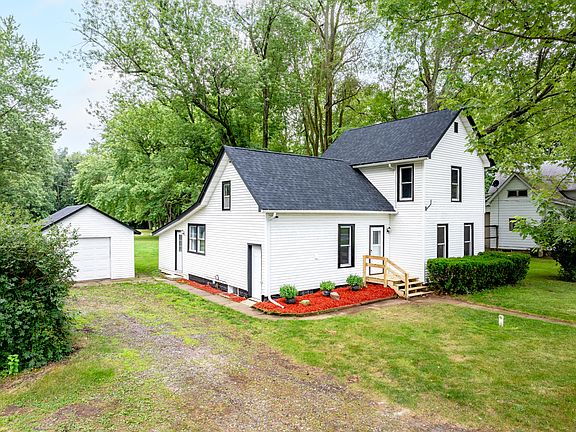 Welcome to your dream country retreat! This enchanting farmhouse sits on almost a full acre, offering the perfect blend of tranquility and peaceful living. Recently updated, this home boasts new windows, roof, cabinets, central air system and a newer water heater and furnace. Inside discover four bedrooms--two on the main level and two upstairs--providing ample space for guests. The primary bedroom, located on the main floor, features an ensuite bath for added convenience. A versatile room on the main level can serve as a fifth bedroom or a gathering room. Both bathrooms have been thoughtfully updated with new sinks, light fixtures, and modern finishes. The heart of the home is the remodeled kitchen, featuring new stainless steel appliances, cabinets, and laminate countertops. Adjacent to the kitchen is an inviting eat-in breakfast island that steps down to a charming den area, perfect for extra seating or entertaining. A formal dining area adds a touch of elegance for family meals and special occasions. Natural light pours in through the new windows, highlighting the fresh paint, new carpet, and luxury vinyl flooring throughout the home. The main floor includes a convenient laundry area and there is also an unfinished basement, providing plenty of extra storage space. Outside, the detached 1.5-car garage and additional parking in front offer space for multiple vehicles. Two storage sheds provide even more room for your belongings. Outdoor amenities are a highlight, featuring a horseshoe pit, fire pit area, and outside bar/she shed, perfect for summer fun. Property borders the Kingsbury Fish & Wildlife Area, a sprawling 7,400-acre expanse of grasslands, marsh areas, and 30-acre lake, where you can enjoy hunting, fishing, etc. This home is a quick drive to town, offering easy access to restaurants, shops, and highways. Don't miss out on this idyllic country home! Note: Tax exemptions are not applied on this home.