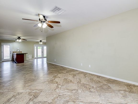 Single level home on a large, corner lot with low maintenance desert landscaping in the front. Open, spacious floor plan with 3 bedrooms, 2 bathrooms and a 2 car garage with built in cabinets and room for an RV or boat. Front door opens up to bright, open living room where 20'' tile, two-tone paint and upgraded hardware creates a beautiful presentation. Kitchen is gorgeous with dark maple cabinets, granite slab counters, tile back splash and stainless steel appliances including refrigerator. Kitchen has tons of cabinet space and there is a pantry for even more storage! Kitchen overlooks great room with wood burning brick fireplace and french double doors which lead to backyard. Master suite has wood laminate floors and tile shower. Additional bedrooms are very spacious and have tile floors and ceiling fans. Large backyard has big grassy area with mature citrus trees, big covered patio and fully fenced sparkling pool.