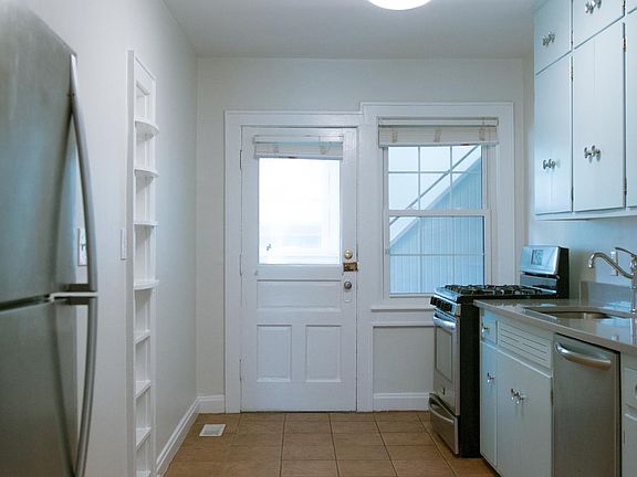 Located at South Lane. Beautifully updated, 2 bedroom flat. Stainless steel appliances, , a/c, hardwood floors, new windows, with wooden blinds, private front porch and private basement that is accessible through kitchen. 1 car garage. NO DOGS please. None smoking building. Tenant pays gas and electric. Owner pays water, trash, lawn care, and snow removal