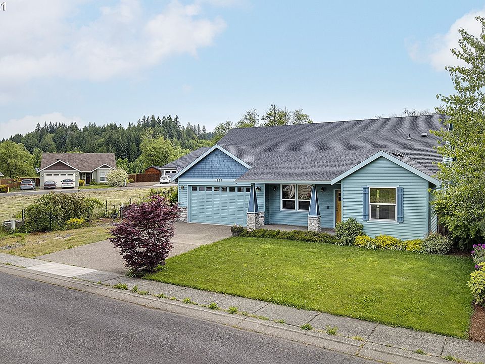 Recently built in 2015 with oak floors, 9 ft ceilings, granite counters, island bar, built-ins, a gas fireplace & AC. Save on electricity w/ the gas hot water heater & furnace. The spacious master suite has a large walk-in closet, walk-in shower, 2 sinks & a sliding door to the beautifully landscaped backyard. Enjoy raised garden beds and covered front & back patios! One level with extra-wide accessible doorways, this is the home that you can stay in for years to come! Check the Virtual Tour.